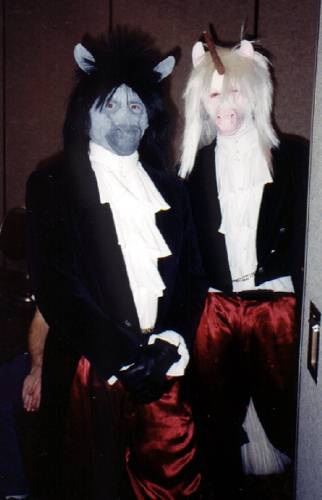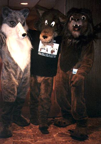 From left to right First - (???), Don Coyote (Farthing Fox), and Stanley D. Lion 2nd - Stanley D. Lion and Silvermane (Ysengrin)