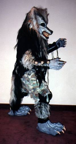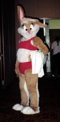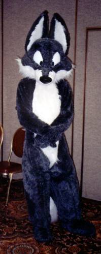 I wake up early and quietly watch a few cartoons while Smash & Dragon sleep on. A breakfast of chocolate covered expresso beans and Sunny D gets the old brain to working. At 11 I have to choose between the Wolf SIG and a fursuit SIG - I head to the fursuit lounge. After an interesting discussion of building fursuits for hire - and construction techniques - it's off to the dealer's room, the only time I saw it while not in costume.