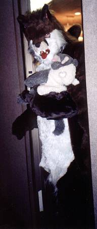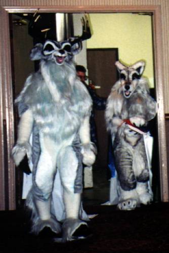 A quick trip to Arby's with Lance and Brokken for dinner. Brokken and I get into our 'zoots and go to the AHWW get-together (again) - but it's already moved elsewhere by the time we got to the Pearl possum. It's close to time for the Fur Dance, so we migrate back to the room to meet up with some of the other fursuiters.