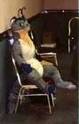 Went to the fursuit lounge for the clothing & props SIG and the carving a head SIG. Teddy Ruxpin's info was interesting. Lance Ikegawa's tips on foam, adheasives, and construction were some of the best information I got at CF9, as well as close-up looks at his Hyena (Chase), Steele, and Frost heads. Passed Silvermane's head around as well. The demo ran well over, and I barely had time to say 'Bye to Brokken before he left.